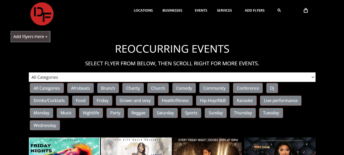 We have two events categories on Digital Flyers: Upcoming Events & Recurring Events